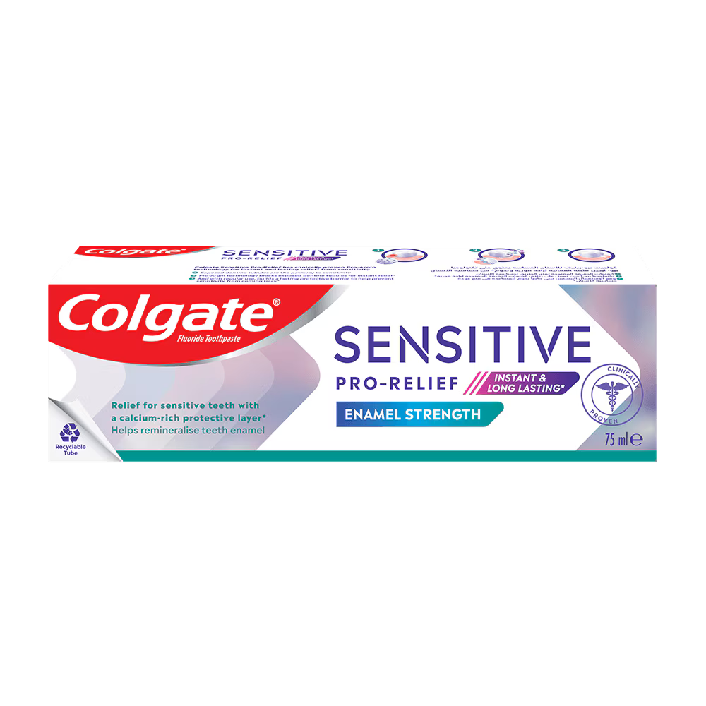 Colgate Sensitive Pro-Relief Enamel Strength Toothpaste features Pro-Argin technology, which not only provides instant and lasting relief* but also helps remineralise teeth enamel giving you a healthier, brighter smile.