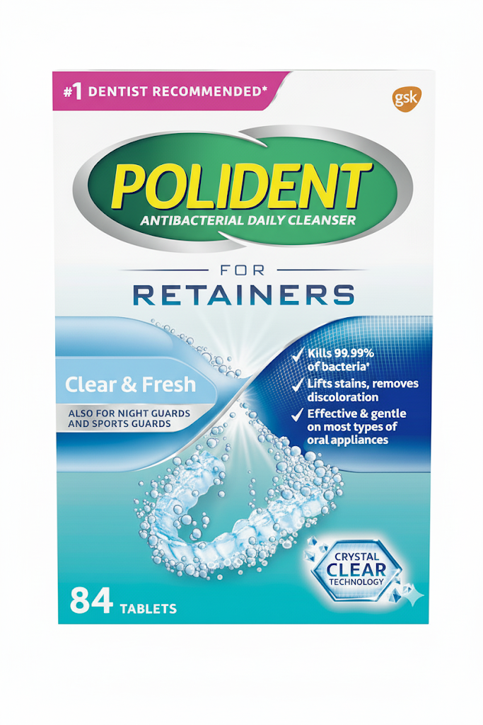 Daily hygiene essentials for aligners, retainers, night gurds and dentures.