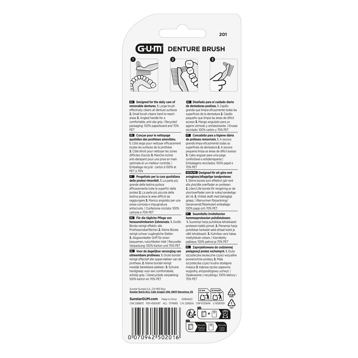 GUM Denture Brush - Dual Headed Hard Bristle Toothbrush