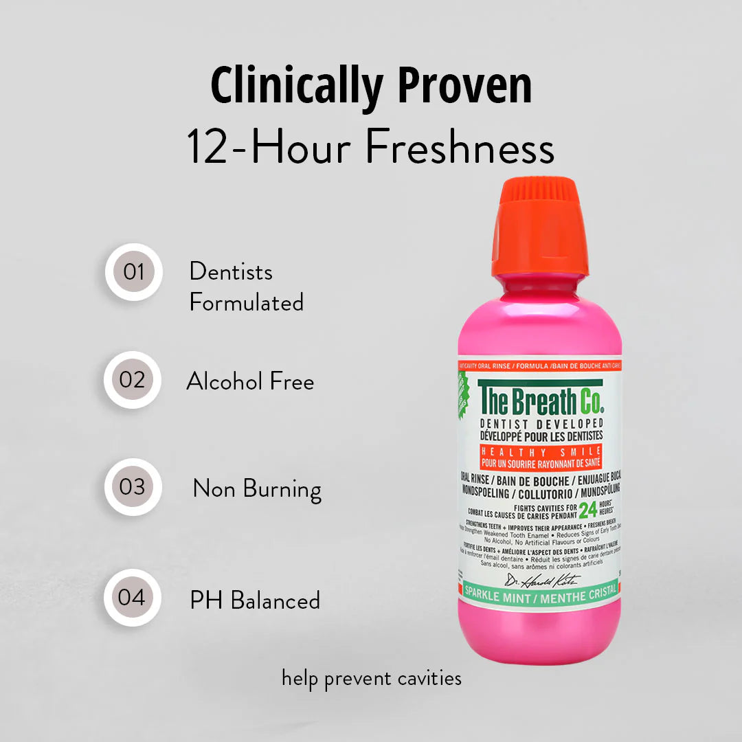 The BREATH Co Fresh Breath Mouth Rinse, Sparkle Mint Flavor, Anti-cativities (500ml)