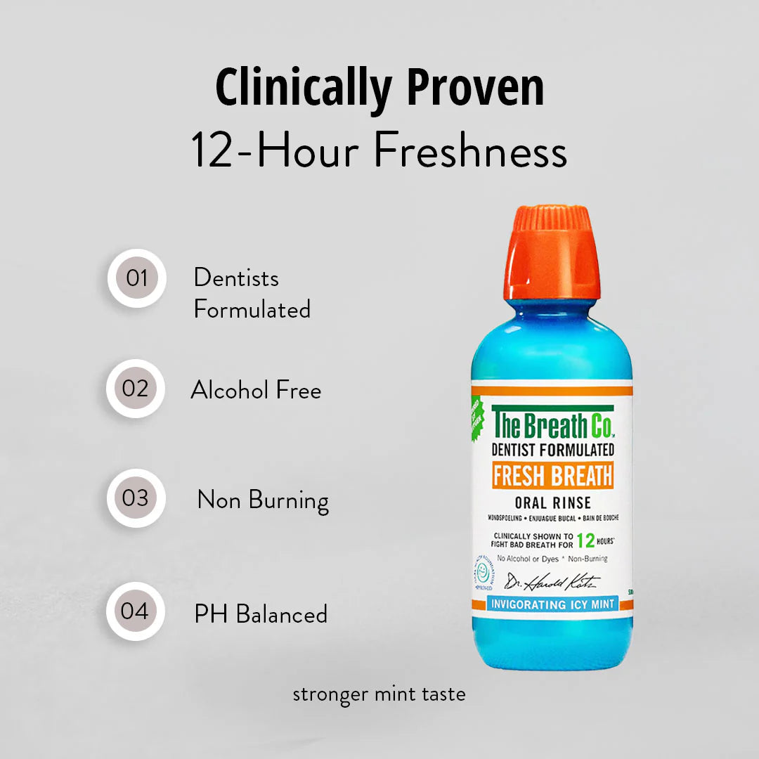 FIGHTS BAD BREATH: TheraBreath Fresh Breath Mouthwash fights bad breath for 24 hours when used every 12 hours after brushing and flossing.