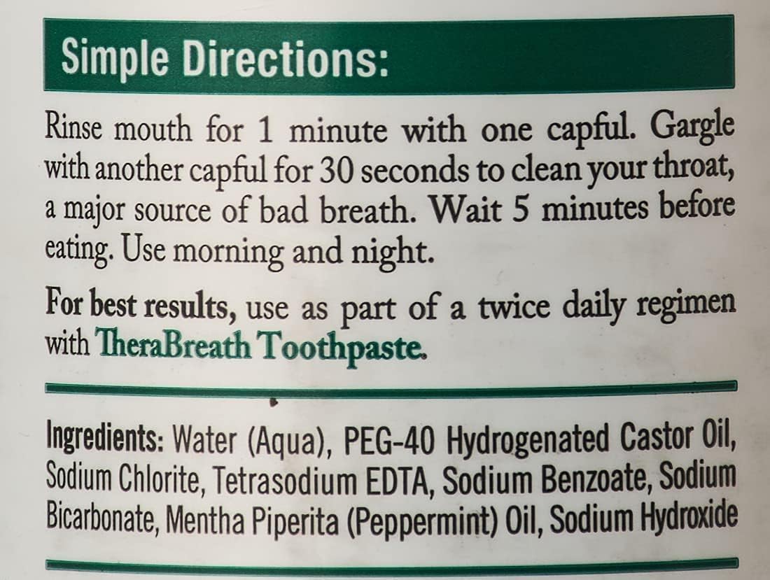 TheraBreath Fresh Breath Oral Rinse Mild Mint is dentist formulated and clinically shown to fight bad breath for 12 hours. TheraBreath excludes alcohol and unnecessary ingredients like dyes and focuses on a science based solution for bad breath. Harnessing the power of oxygen, TheraBreath kills odour causing bacteria in the mouth whilst being pH balanced, vegan, gluten-free, Halal-certified and cruelty-free.