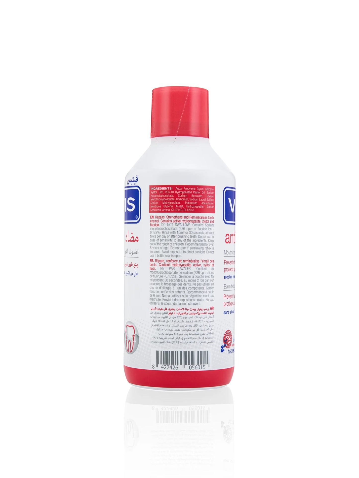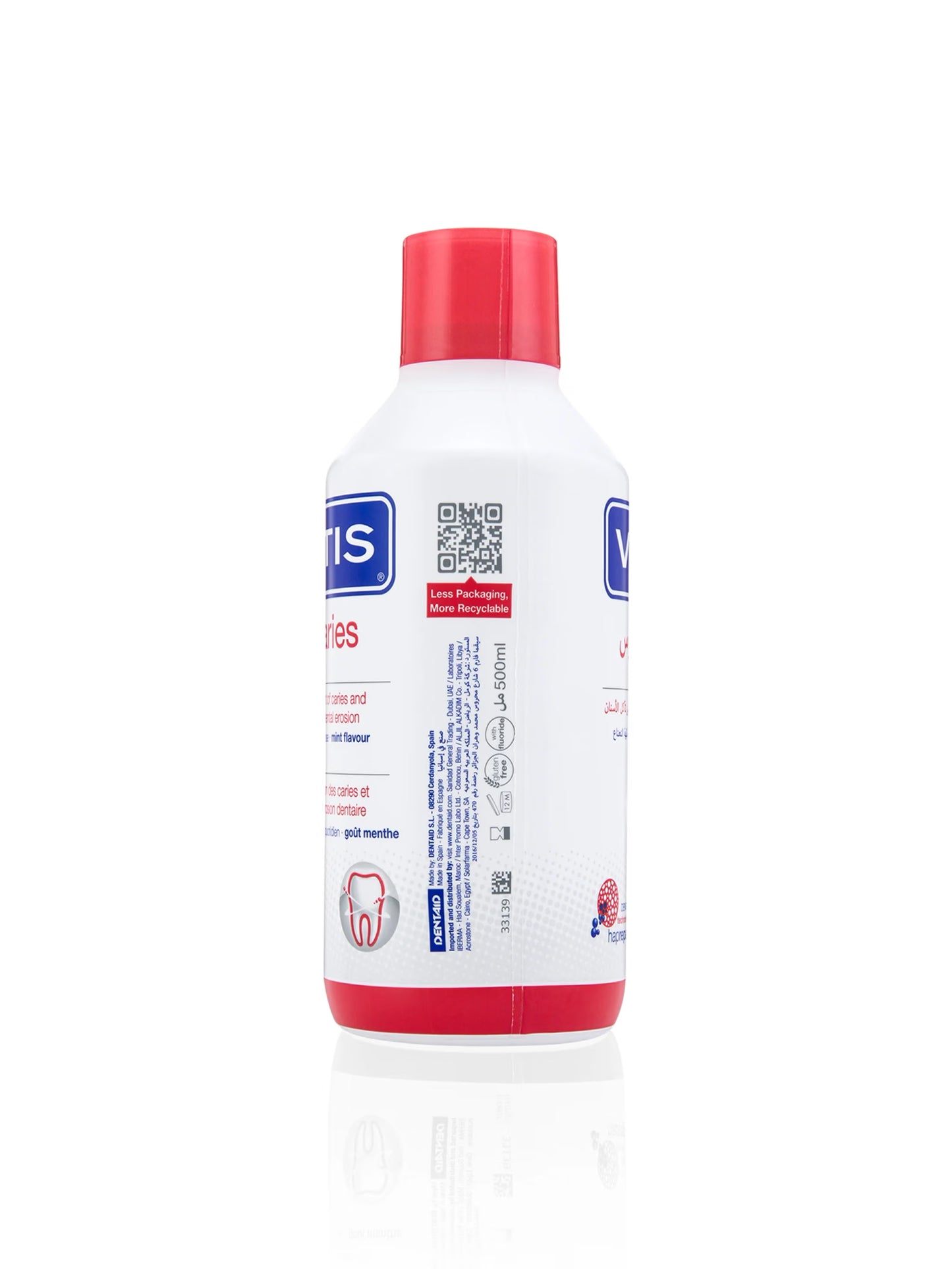VITIS® anticaries mouthwash is specially formulated to prevent the onset of caries at three levels. Thanks to its triple anticaries action, and when combined with VITIS® anticaries toothpaste, it repairs, reinforces and remineralises enamel for superior prevention of dental caries, and it also protects against dental erosion. VITIS® anticaries mouthwash is formulated without alcohol to not irritate gums and to be gentle on and protect them.