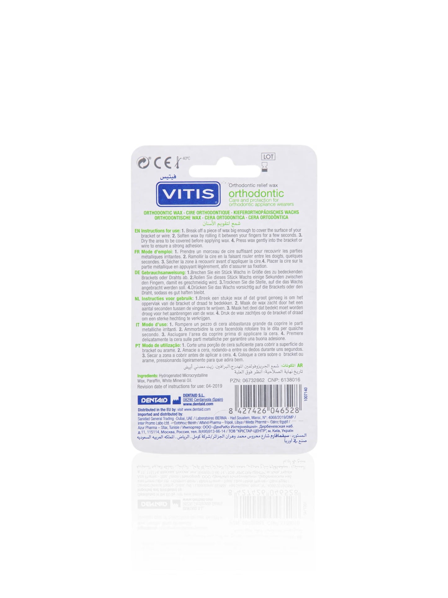 Vitis Orthodontic Wax protects gums against rubbing caused by orthodontic appliances. Vitis Orthodontic Wax is wax that works as a protective layer to prevent irritation and rubbing from orthodontic appliances, and it also relieves pain. Vitis Orthodontic Wax is intended for application to orthodontic appliances that protrude from teeth (brackets, arch wires or metallic bands) and that can therefore cause sores from rubbing against the tongue or internal cheek surfaces. The wax works by forming a thin protective layer to prevent the appearance of lesions.