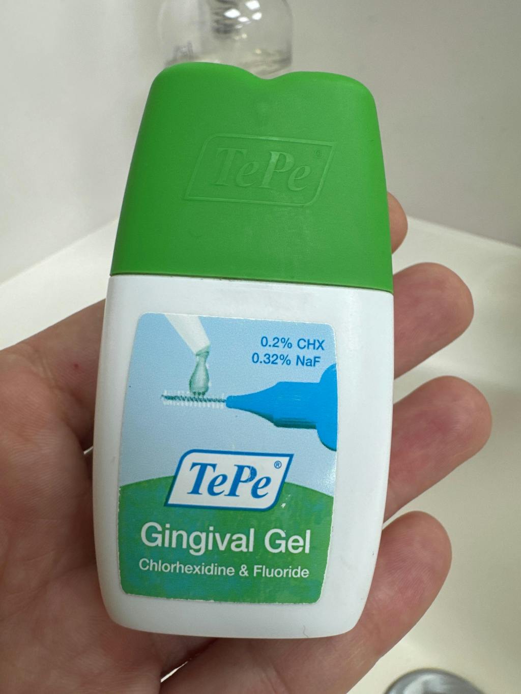 TePe Gingival Gel contains both chlorhexidine and fluoride. Chlorhexidine is effective against plaque, while fluoride strengthens the tooth enamel and helps prevent caries. It contains no colourants, alcohol, or abrasives, and is therefore gentle on both teeth and gums. It has a fresh mint flavor.