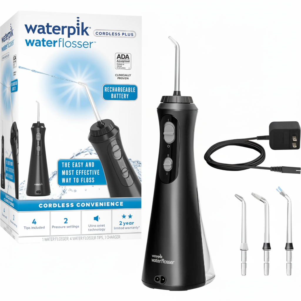 A water flosser uses a pressurised stream of water to clean between your gum line. It's a gentle effective way to remove debris and reduce plaque, especially if traditional flossing is a bit tricky.