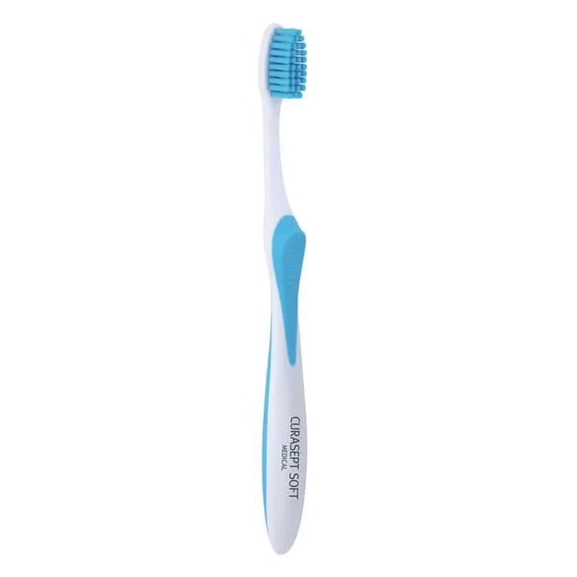 - Curasept Medical Classic Blue Soft Toothbrush remove and break down plaque much more effectively than traditional toothbrushes, thanks to the Soft Touch System technology. An innovative system characterized by extra soft extra flexible, numerous, compact bristles. The high quality of polyester filaments combined with the degree of softness and density, ensure a superior cleaning capacity without causing damage to gums and tissues of the teeth. Highly effective - Highly atraumatic. When you brush your teeth, Curasept toothbrush help remove food debris and plaque - a sticky white film that forms on your teeth and contains bacteria, safely without damaging the sensitive oral spaces. When you brush correctly, you eliminate the plaque build-up and bacteria that can otherwise collect between your teeth and on your tongue. Curasept medical brushes are particularly indicated in combination with Curasept ADS toothpaste and mouthwash treatments.